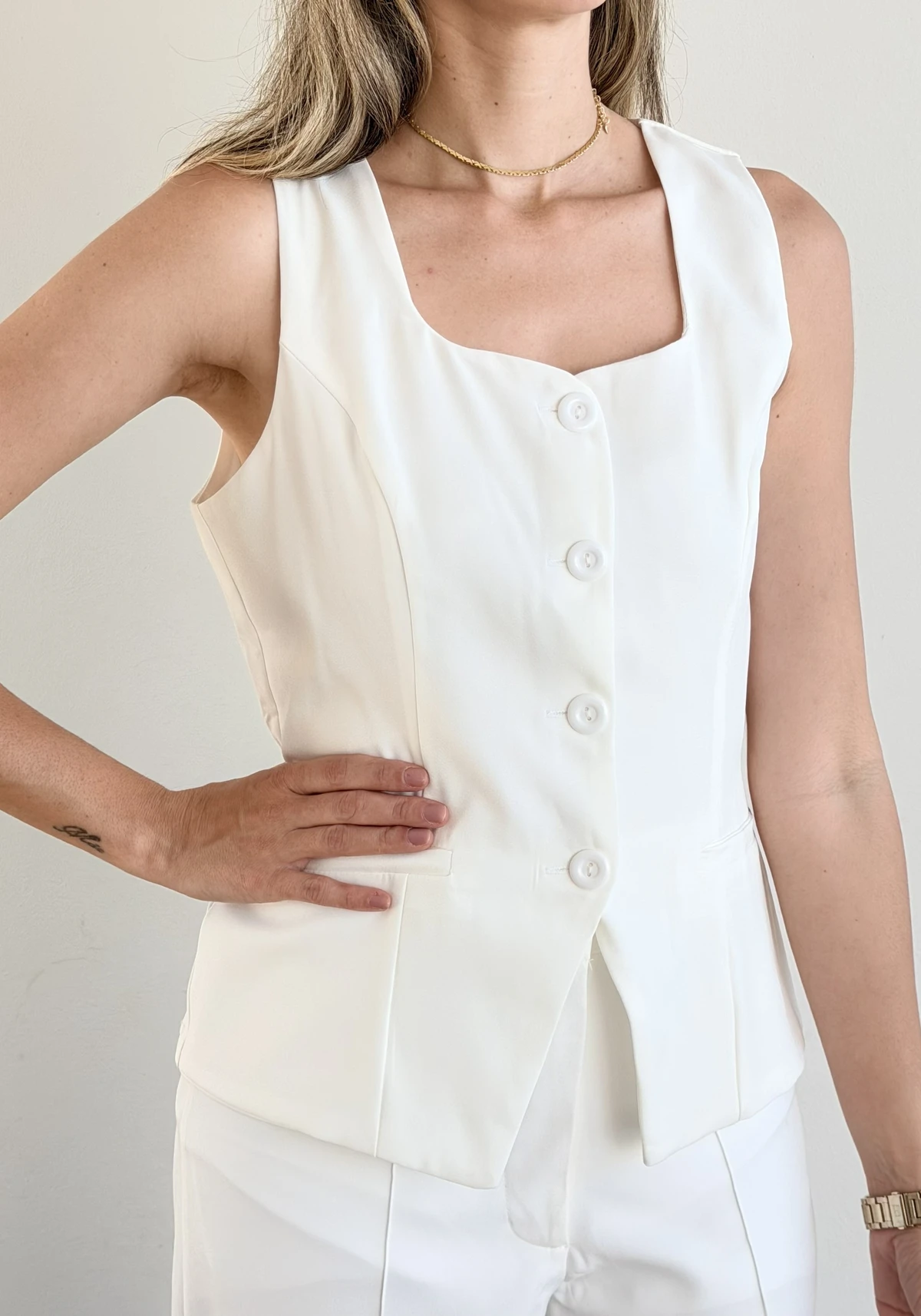 Confeccionado com acabamento impecável, o Colete Tábata é ideal para compor produções profissionais, casuais ou fashion, trazendo estilo e personalidade em qualquer ocasião.