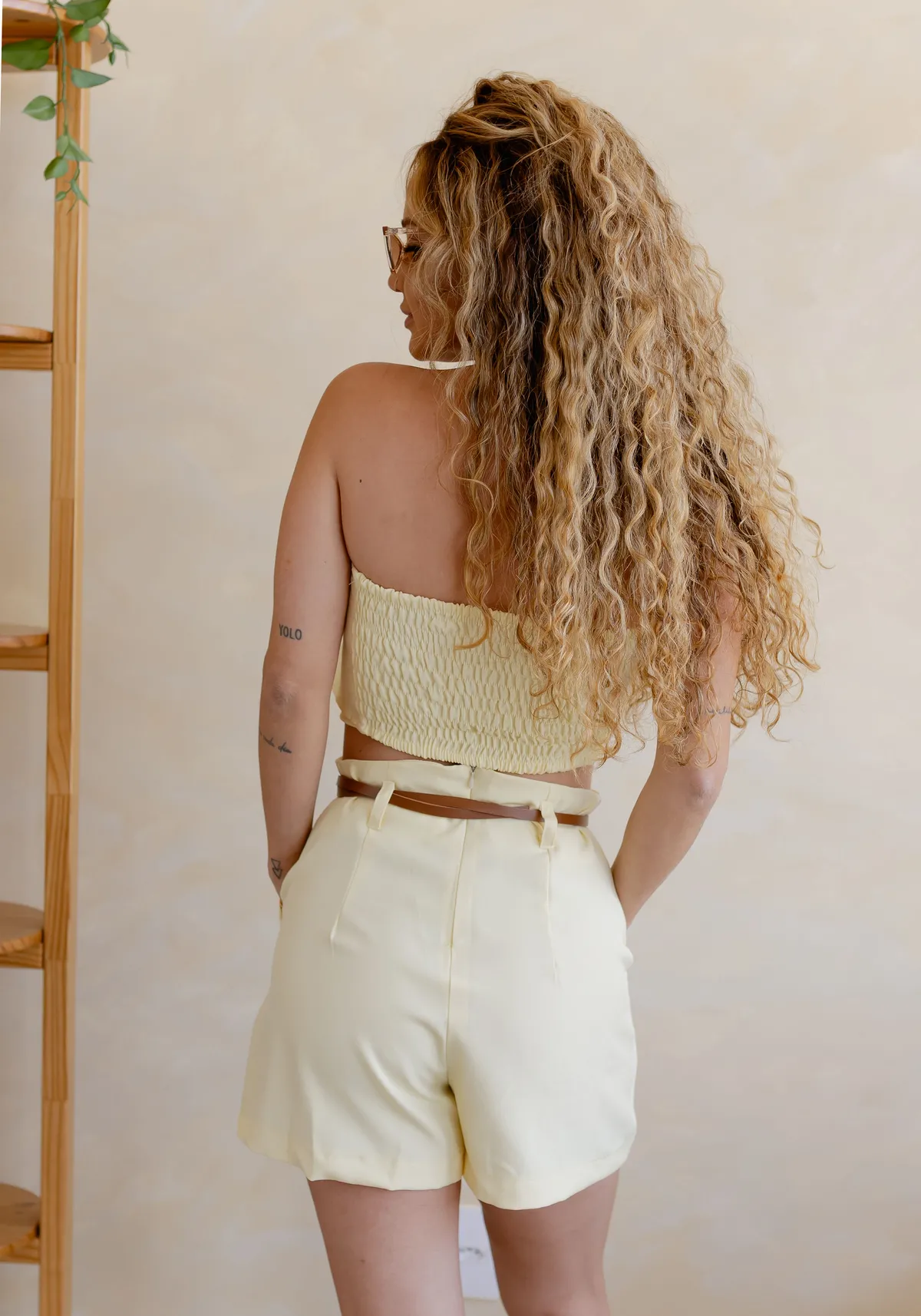 O short complementa o conjunto com um caimento impecável, trazendo praticidade e charme para o dia a dia. O cinto que acompanha a peça adiciona um toque especial, permitindo ajustar a cintura e deixando o visual ainda mais estiloso e harmonioso.
